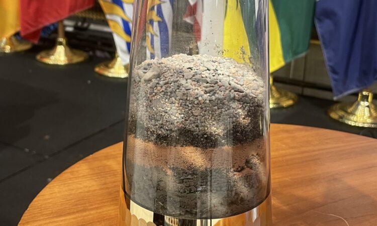 After each repentance prayer, a representative from each Province would put soil brought from that Province into a glass container. They would also place a rock, hand-picked from the province, into a golden bowl. The soil from each Province and the Territories represents the Land of Canada and was offered to our Lord. The idea of gathering the stones originates from Joshua 4, where the 12 tribes collected stones from the Jordan River. May the rocks we brought forth together be a memorial to the people of Canada forever.